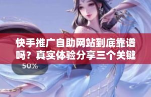 在当今的数字营销时代,快手作为一个流行的短视频平台,吸引了大量商家和个人用户进行推广。然而,关于快手推广自助网…
