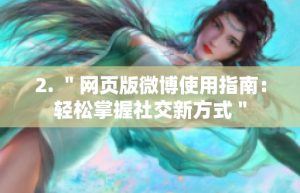 随着社交网络的快速发展,微博作为中国最受欢迎的社交媒体之一,吸引了越来越多的用户。网页版微博的使用指南将帮助您…